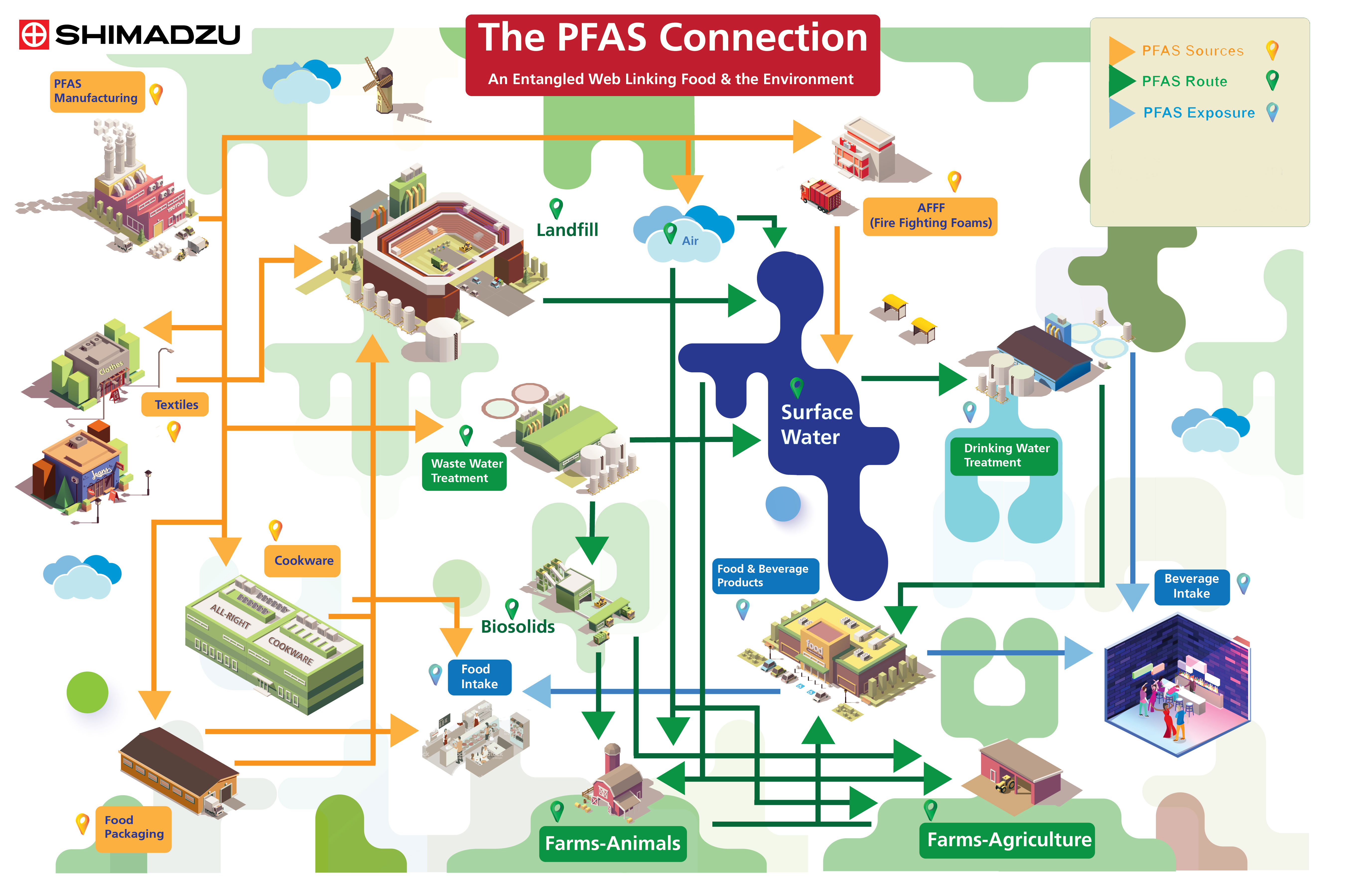 • Per-and polyfluoroalkyl substances (PFAS) are a group of persistent and harmful chemicals that can be commonly found in the environment globally. These anthropogenic chemicals can come from various sources such as manufacturing, industrial applications, food contact materials and consumer products, and eventually end up and accumulate in the water, soil and living organisms. With concerns rising quickly about the health risks associated with PFAS exposure, it is important to ensure proper monitoring of these chemicals.