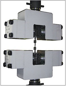 A strong gripping force during testing and high precision control required for ISO 6892 strain control is offered by parallel tightening hydraulic flat grips. Applicable materials include high tensile strength materials such as rigid plastics, metals, and lumber, in flat plate and rod specimen geometries.